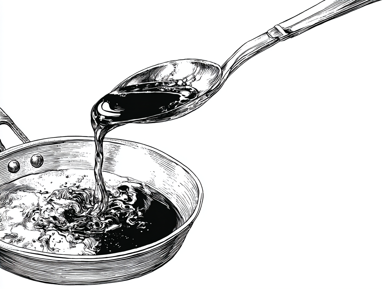 Tillsätt vin, kalvfond, soja och vatten. Sjud 20–30 min